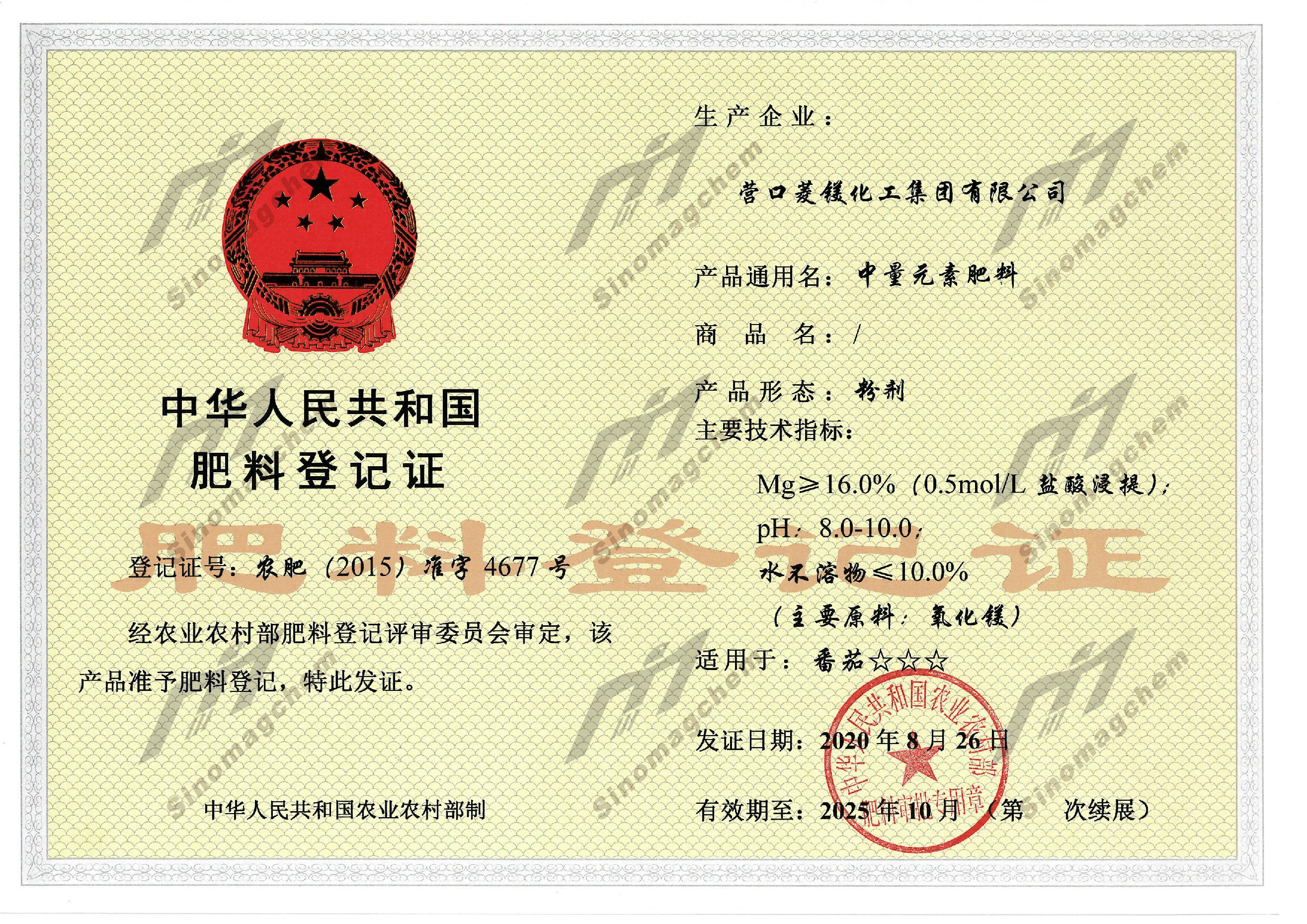 肥料登記證(粉劑)